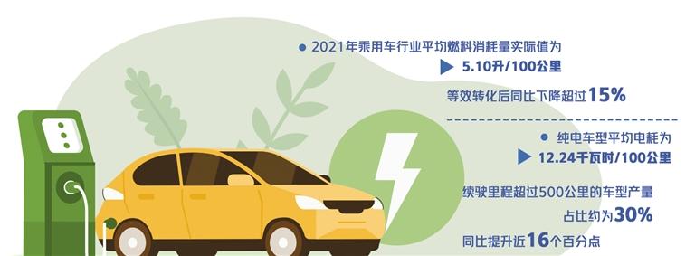 近日,工业和信息化部发布《乘用车企业平均燃料消耗量与新能源汽车积分并行管理办法实施情况年度报告(2022)》。《报告》显示,2021年乘用车行业平均燃料消耗量实际值(WLTC工况)为5.10升/100公里,等效转化后同比下降超过15%,超额完成年度5.98升/100公里目标。