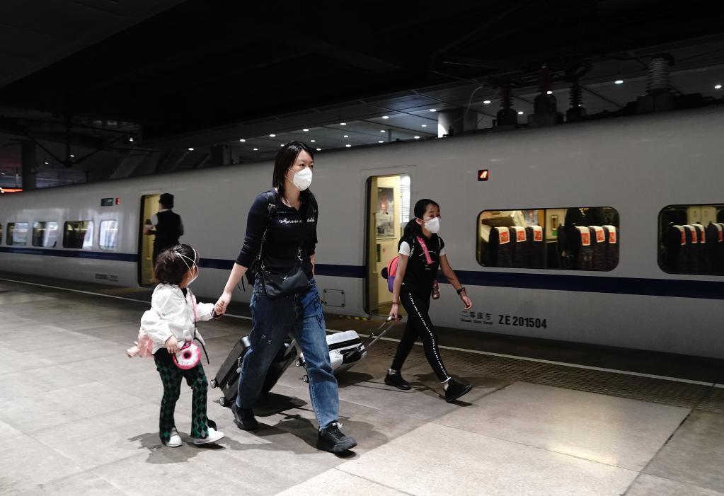 6月1日,D2152次列车的旅客正在乘车。(新华社记者丁汀摄)