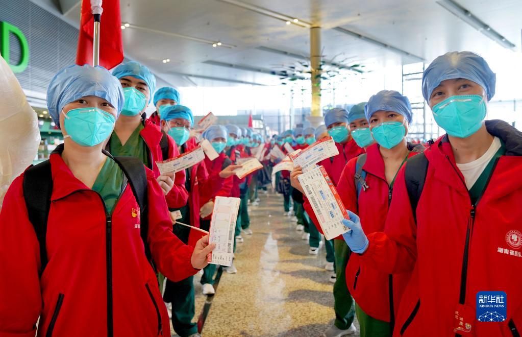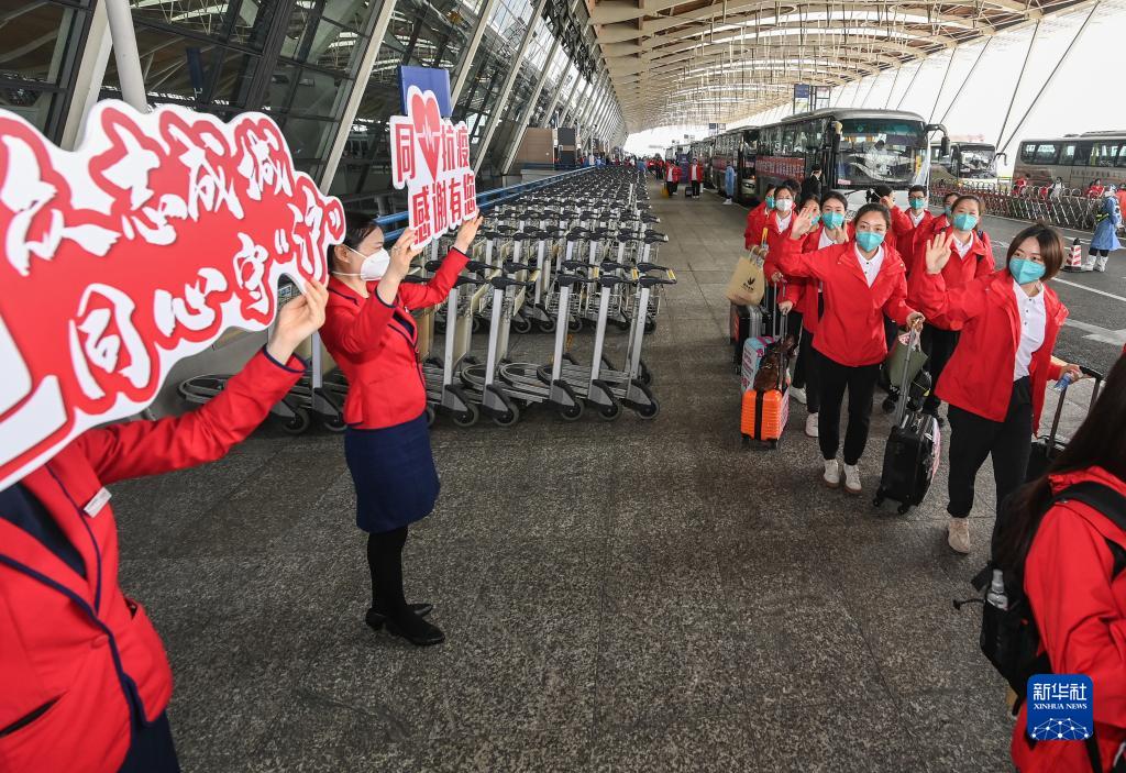 虹桥机场、虹桥高铁站骤然忙碌起来,全国各地的医疗队纷纷逆行而至。4月3日,武汉金银潭医院援沪医疗队领队程芳一下火车,看到很多人前来迎接,不断说“谢谢”。程芳说:“上海人不用跟武汉人客气!”