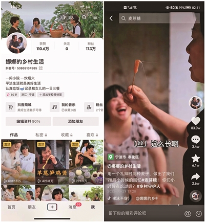 这两天,“娜娜的乡村生活”系列视频在社交平台上走红。一则手工制作麦芽糖的视频,单在抖音平台就收获了网友们6000多万点击和80多万点赞。视频中的主角,是娜娜以及患有唐氏综合征的女儿圆圆。