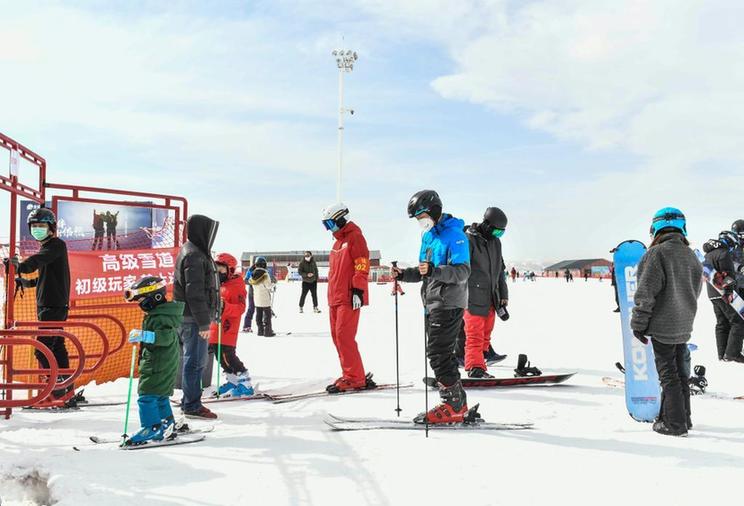 2021年2月15日,游客在吉林省吉林市万科松花湖滑雪场滑雪。新华社记者颜麟蕴摄