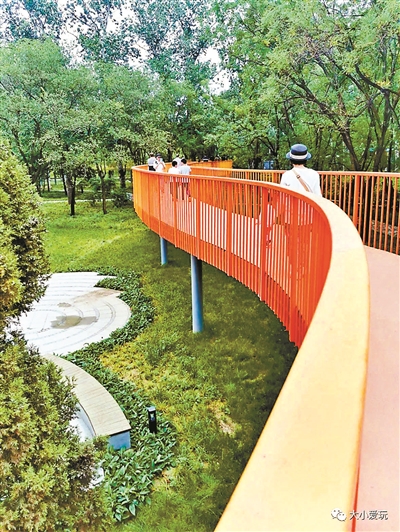 接下来,可以顺着湖边,一路溜达一路赏景,也可以沿着主干步道绕大圈。重新亮相的龙潭中湖公园非常注重健身功能,新增加了不少运动设施,还会开展“新龙潭·潮运动”健走活动。