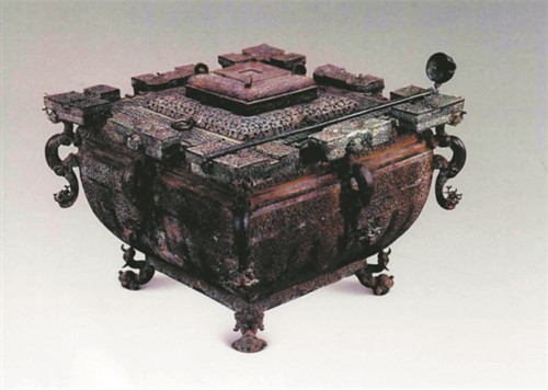 1978年发掘的湖北随州战国曾侯乙墓,出土了两套形制、纹饰相同的大型冰酒器具——铜鉴缶,为学者们研究古代用冰的方法提供了实物资料。铜鉴缶由方鉴和方尊缶组成,方尊缶放在方鉴内部正中,缶中放酒,鉴与缶之间的空隙放冰,达到冰酒的目的。结合《楚辞·招魂》中的“挫糟冻饮,酎清凉些”,战国时期贵族的夏日生活仿佛浮现眼前:酿好的米酒过滤之后,用鉴缶冰镇饮用,清凉可口。