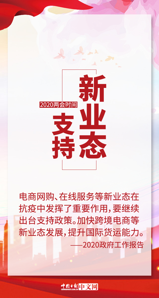 2020年全国两会胜利闭幕了,这是一次在特殊时期召开的不平凡两会。当前,经过全国人民的共同努力,我国疫情防控取得重大战略成果。今年政府工作报告强调,下一阶段要毫不放松常态化疫情防控,抓紧做好经济社会发展各项工作。政府工作报告还提出,增强发展新动能,加快新业态发展,激发新消费需求……这些都将为我国经济长期向好发展注入强劲动力。