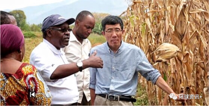 中国农业大学特聘教授、中国南南农业合作学院名誉院长李小云(右一)在坦桑尼亚推广“玉米密植增产技术”