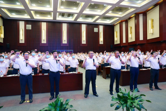 响鼓重锤,誓言铮铮。“我们是今世缘战舰上的将士,直挂云帆,劈波斩浪,用力、用心、用情,大干一百天,争创新佳绩。”6月7日,今世缘酒业召开营销系统“百日大会战”专题会议,与会人员集体宣誓,克难攻坚的激情沸腾,誓达目标的豪情燃烧。