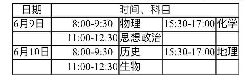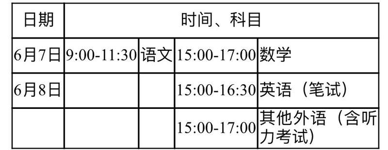 统一高考时间安排