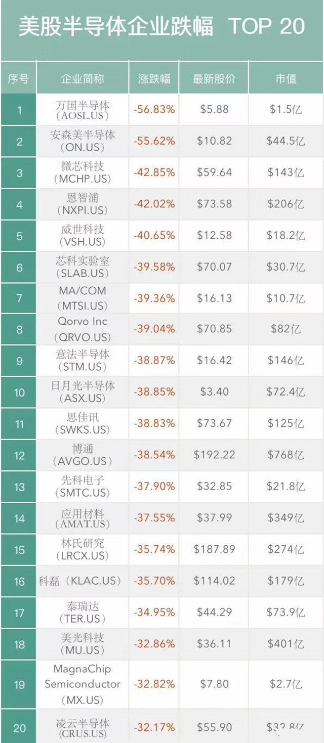 原标题:4次熔断过后 美股半导体企业最高跌幅超50%