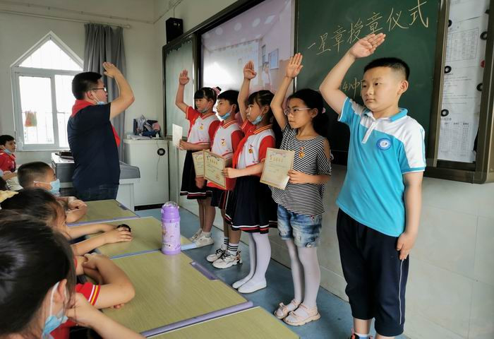 活动伊始,该校党支部书记、校长施永生对全校师生致以节日的问候。同时该校关工委自筹资金共5800元,为贫困学子发放了爱心助学金,在这个特殊的日子为孩子们更添一抹温暖。大队部举行了授章仪式,向全校20名优秀少先队员代表颁发了红领巾一星章。