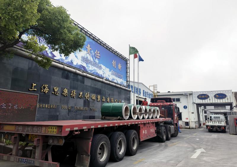 6月2日,一辆大货车开进上海思乐得不锈钢制品有限公司工厂。新华社发