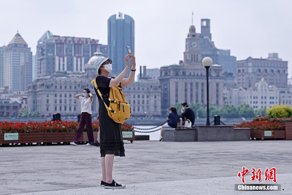 6月2日,市民走在陆家嘴滨江公共空间上,感受户外生活。6月1日起,随着上海疫情防控形势趋于稳定,上海全面恢复全市正常生产生活秩序。市民在陆家嘴滨江公共空间上,用手机拍摄风景。 殷立勤 摄