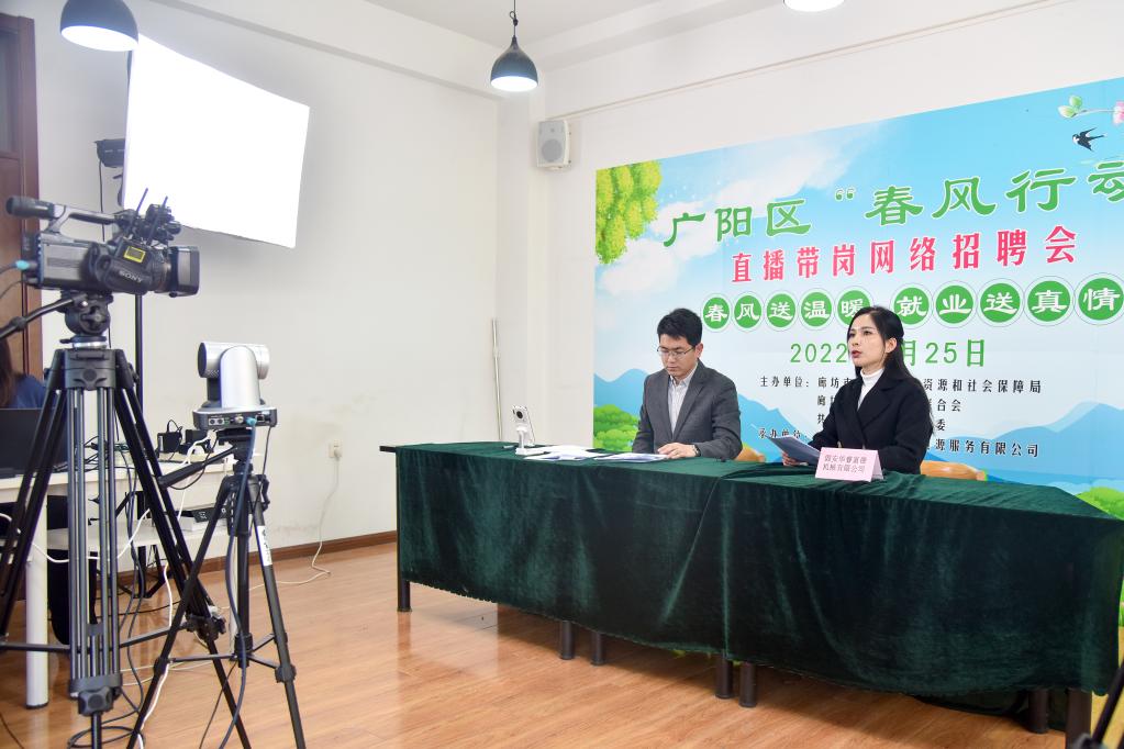 廊坊市广阳区“春风行动”直播带岗网络招聘会现场。(受访者供图)