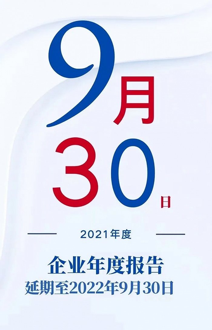 “上海发布”微信公众号6月1日消息,为高效统筹疫情防控和经济社会发展,大力支持企业等各类市场主体复工复产复市,经市政府同意,市场监管、商务、人力资源社会保障、统计、海关、外汇六部门制定政策,2021年度企业年度报告延期至2022年9月30日。