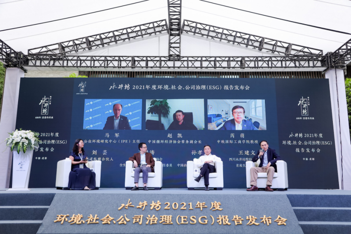 圆桌讨论环节中,公众环境研究中心(IPE)主任马军、中国循环经济协会常务副会长赵凯、中国电子节能技术协会全生命周期绿色管理专委会主任委员王洪涛、南方周末中国企业社会责任研究中心主任孙孝文,分别从各自领域的专业角度进一步梳理了中国白酒行业目前面临的核心ESG风险及机遇,并对进一步提升行业ESG管理水平提出了各自建设性的意见。在此基础上,中欧国际工商学院芮萌教授结合中欧商学院正在开展的全球蒸馏酒行业ESG评价体系的研究进展,对白酒行业产生关键影响的ESG指标进行了总结分享。此外,水井坊首席生产运营官王建文重点就水井坊的生产运营环节,介绍了所识别的ESG风险,并以水井坊邛崃全产业链基地项目为例,展示了公司在环境健康安全管理方面取得的显著成效。