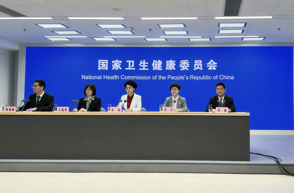 国家卫生健康委发布会现场。新华社记者 顾天成 摄