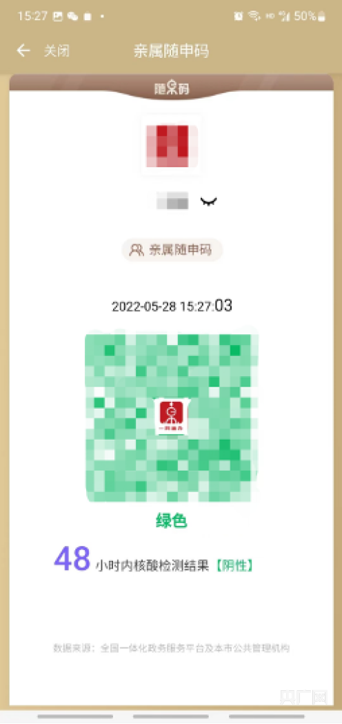出行必备:亲属“随申码”
