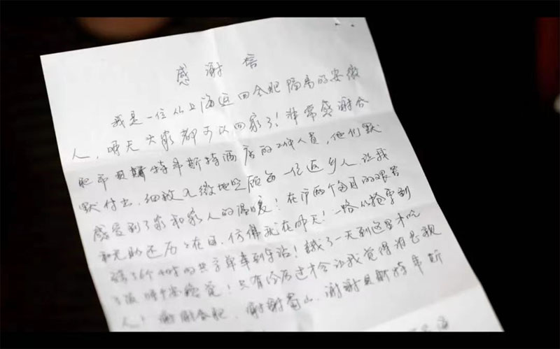 5月28日晚,合肥市蜀山区一隔离酒店工作专班收到了一封来自隔离人员的感谢信。信中字字真切,句句暖心。记者穿上了防护服,来到了隔离酒店了解感谢信背后的故事。