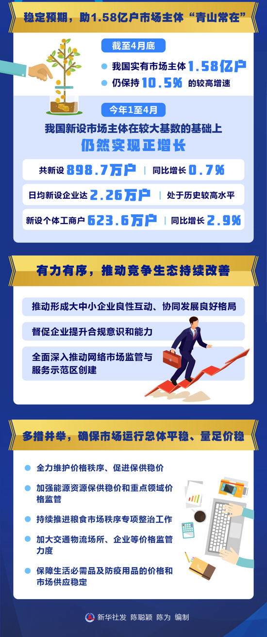 今年3月起,《市场主体登记管理条例》正式施行,为进一步稳定市场主体发展,优化营商环境,释放了积极的政策信号。条例施行首月,迎来稳增长“成绩单”——3月份全国新设市场主体295万户,同比增长19.3%,其中企业83.5万家、同比增长8.9%,个体工商户210.3万户、同比增长24.2%。