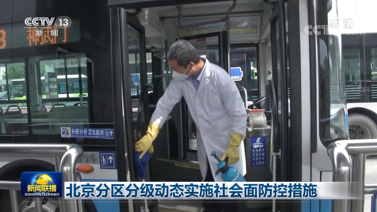 央视网消息(新闻联播):北京本轮疫情已得到有效控制,今天(5月29日)开始分区分级动态实施全市社会面防控措施。除封(管)控区外,朝阳、顺义、房山等3个区的公共交通运营服务今天同步恢复。重点区域的公交线路每趟消毒,运营中车辆开窗保持通风。地铁站内重点区域每一小时消毒一次。