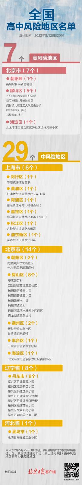 调整后,全国有高风险地区7个,低风险地区29个。