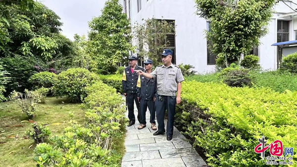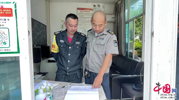 (宋成(右一)指导保安人员做好日间巡查工作。潘莹摄)