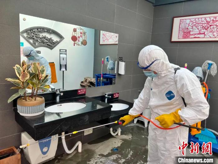 工作人员重点对公共厕所、座椅、栏杆、废物箱、健身及游乐设施等进行消杀。 上海市绿化市容局供图