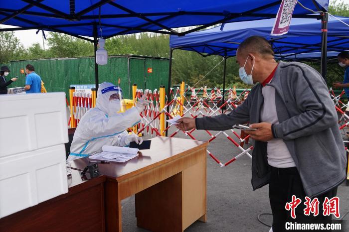图为来宁返宁人员在收费站出口进行核酸检测。 马铭言 摄
