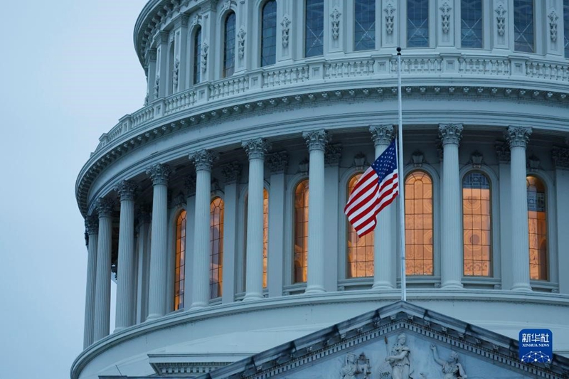 2022年5月24日,在美国首都华盛顿,国会大厦降半旗向得克萨斯州枪击事件遇害者致哀 。新华社发(沈霆 摄)
