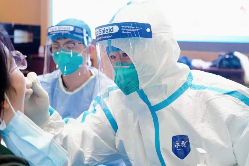 医务人员为湖南省长沙市长郡中学学生进行核酸检测。(受访者供图)