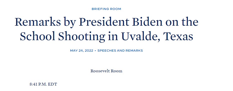 当地时间5月24日,美国总统拜登对得州学校枪击事件发表声明。图片来源:白宫网站截图