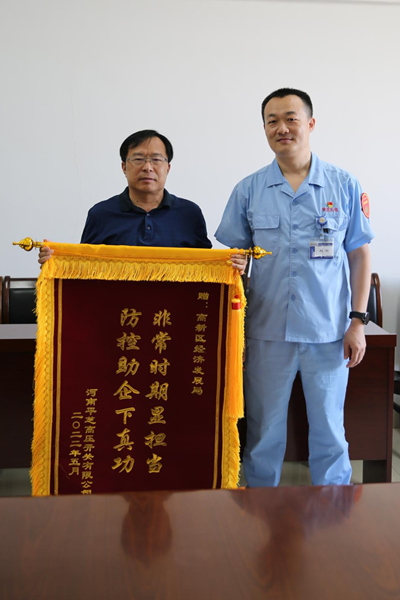 “多亏了高新区的全力支持,疫情期间我们企业才能安心生产,没有后顾之忧。感谢高新区的领导和同志们!”5月23日一大早,平芝高压负责人刘刚就把印有“助企业服务下真功,非常时期显担当”的锦旗送到了平顶山高新区经济发展局,表达感激之情。