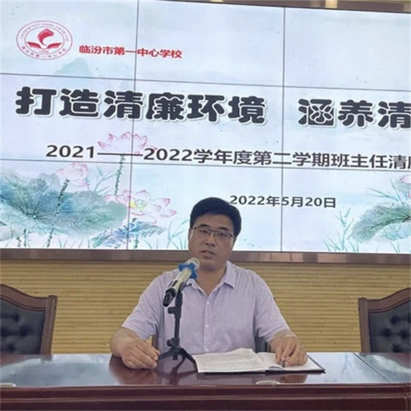 5月20日下午,临汾市第一中心学校举行了学年度第二学期班主任清廉工作会议,高洪山校长、王创科副校长、各年级主任以及全体班主任参加了会议,德育处林延霞主任主持会议。