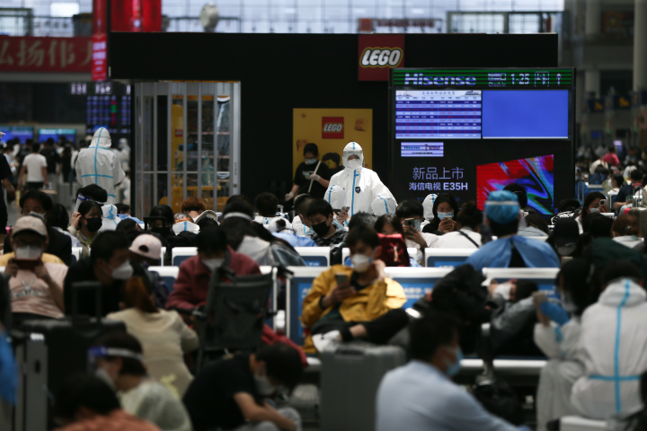 5月22日,上海虹桥火车站内有不少乘客在候车。新华社记者 丁汀 摄