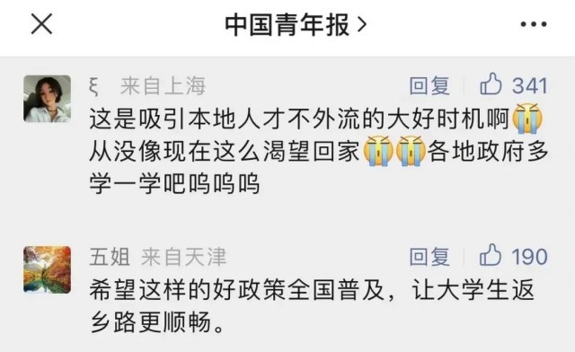 中国青年报注意到,近日,又有多地宣布:返乡大学生隔离费用全免!