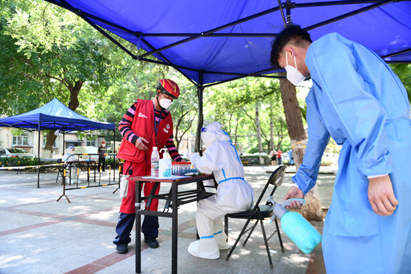 5月21日、22日,北京最高气温达35℃。朝阳区的各核酸检测现场,各检测点及时应对,为工作人员和前来检测的市民送上“一片清凉”。