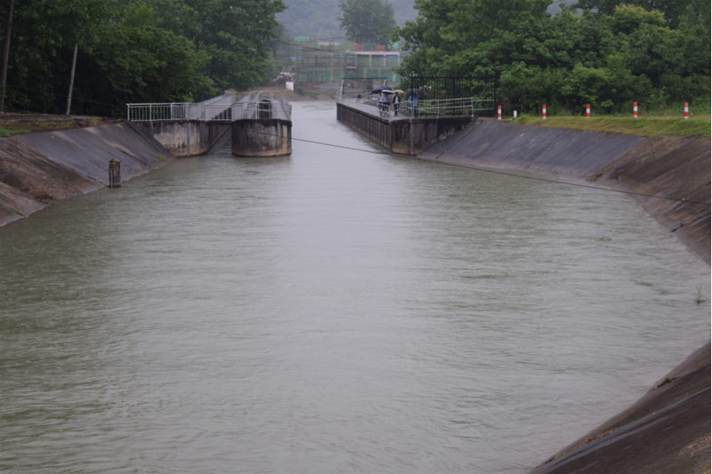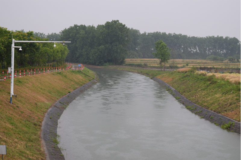 细雨中潜南干渠花岗镇红堰段正在全力引水