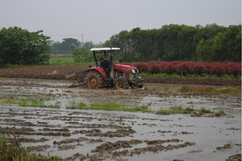 肥西县潜南灌区花岗镇粉坊村种粮大户郑玉财正在开旋耕机耕田