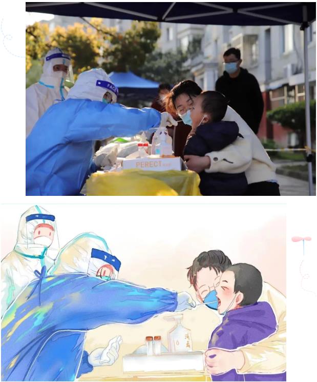居民们积极配合,医护人员及志愿者细致入微、全力以赴,一起并肩作战,共克时艰。