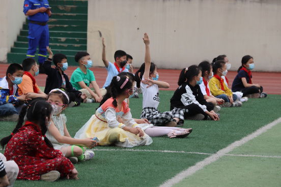 队长答疑时间留给同学们互动时间,同学们把自己关于溺水和救治等方面的疑问提出来,请蓝天队长一一解答。活动尾声,全体学生和蓝天队员一起合影留念。(图文/合肥市琥珀名城小学教育集团包公校区)