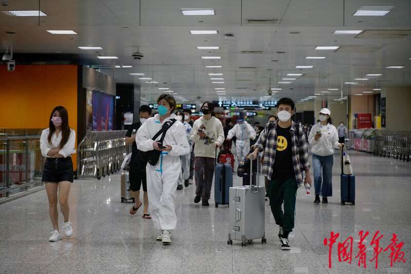 5月22日,上海地铁虹桥火车站站,一行乘客刚刚乘坐地铁抵达。中青报·中青网记者 李强/摄
