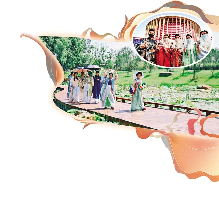 今年“五一”假期,沉浸式唐风市井生活街区“长安十二时辰”在西安开市,不少游客特地换上唐制汉服,前来观唐艺、听唐乐、品唐食。错落有致的古风建筑间,衣袂飘飘,裙裾飞扬,汉服之美引人注目。