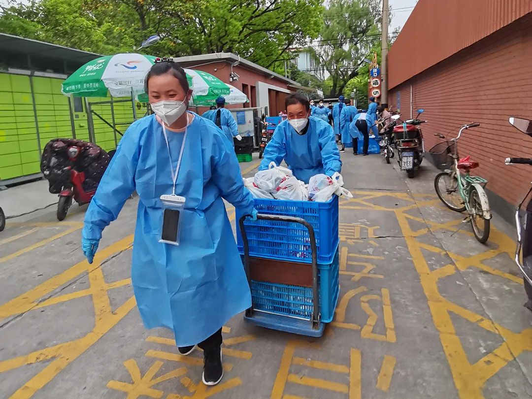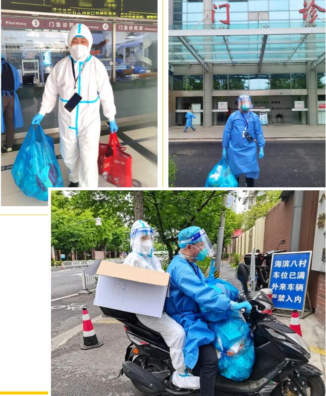 虽然配药组的成员不多,但每天一大早,他们就带着厚厚的一堆病历本出发了。他们先是来到社区医院、街道医院为居民配药。中午前后,他们便拎着一大包药满载归来。是他们使得患病居民足不出户就可以买到药,生命健康有保障。