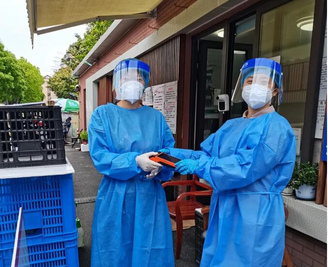 小区守门组共18人,分为3个小组,每组6人。从早上8点开始到晚上20点结束,每班2小时。值班人员驻守小区门口,用“电子哨兵”核验进入小区的快递配送人员的核酸和抗原检测情况,提醒他们戴好口罩,确保符合规定要求。他们把好入口关,切断传染源,将病毒拒之门外。