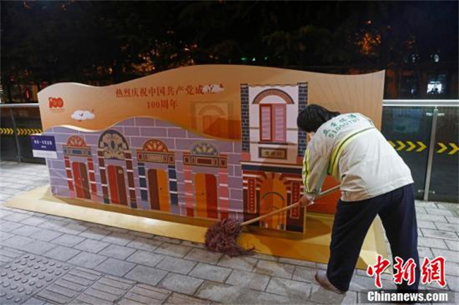 71路中运量公交车的部分司机正在对外滩站进行站台清洁。
