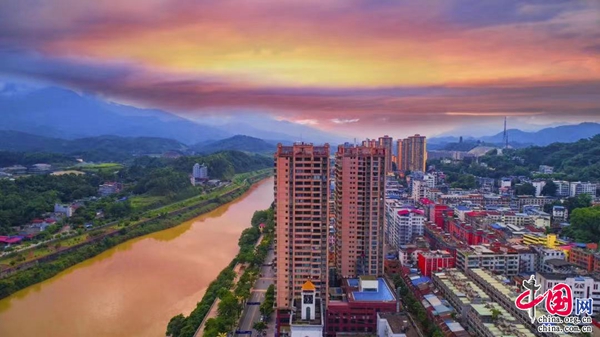 夜幕降临,开远市彩霞漫天,金光灿灿的晚霞照亮了天空,为大地披上盛装,晚霞与凤凰钟楼交相辉映,宛如仙境。