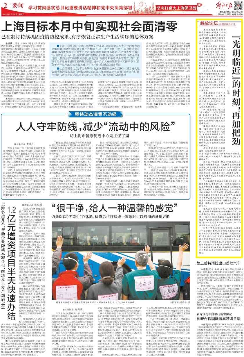 上海正在用更快的速度、更细的措施、更准的办法,推动经济社会有序恢复,加快打赢大上海保卫战。