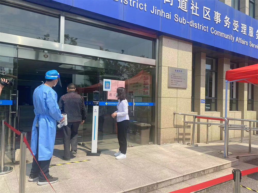 目前,凡进入社区事务受理服务中心办事的市民必须佩戴口罩,必须测温、刷场所码或数字哨兵,随申码显示绿色、持48小时内核酸阴性报告、体温正常方可进入受理中心大厅。