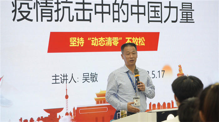 “‘动态清零’是以最小的社会成本投入获得最大的社会效果,是我国疫情防控经验的总结和提炼,也是现阶段防控策略的最佳选择。”吴敏以身边的防疫故事,既有深度又有温度地为师生们解读了“动态清零”总方针的必要性和科学性,让大家在疫情防控中深刻感受中国共产党的英明领导和社会主义制度的巨大优势,进一步坚定“四个自信”。