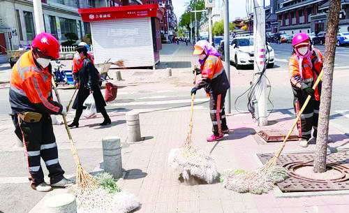 东盛保洁中队繁忙的工作场景,仅仅是二道区开展消毒清洁行动的一个缩影。据二道区城管办副主任、城管局副局长董鹤铭介绍,自消毒清洁行动开展以来,二道区已清洗街路、人行步道43条,清洗快速路挡墙、交通护栏约9500延米,清理残叶枯枝、乱扔乱弃等垃圾杂物270处;清理卫生死角生活垃圾、装修垃圾等420吨,清运生活垃圾491车、3576吨;整治窗口单位周边店外经营和流动摊点5处,清理垃圾50吨,清理占道经营、占道修车等行为9处;在加大居民小区清理力度方面,清理居民小区145个,清除卫生死角410处,清理乱堆乱放杂物843处,清理建筑垃圾312吨,清除各类张贴物760处,环境清洁整治成效明显。
