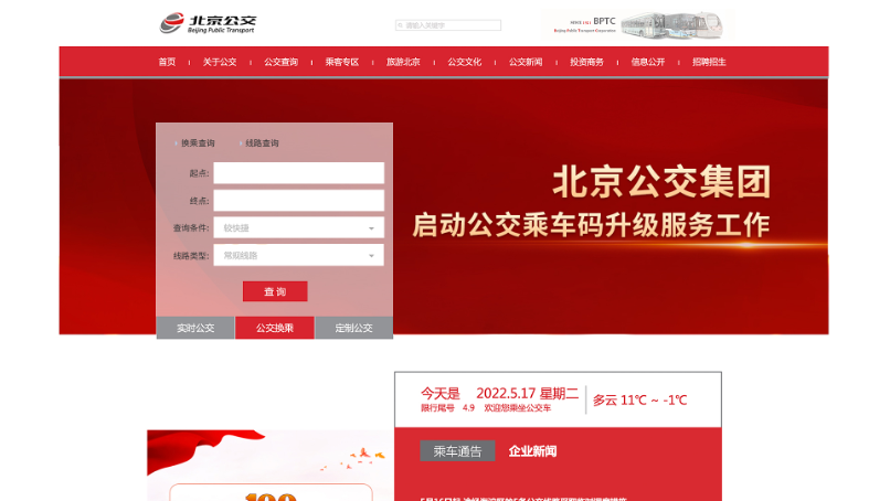 登录北京公交集团官方网站(www.bjbus.com),在首页上找到【北京公交集团启动公交乘车码升级服务工作】,点击进入操作。